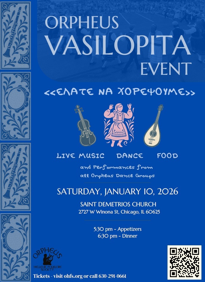 The event will, again, feature an amazing line-up of musicians from Greece and Chicago along with plenty of food, dancing, and performances from all Orpheus groups!